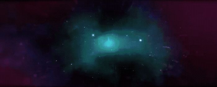 a green and purple space filled with stars